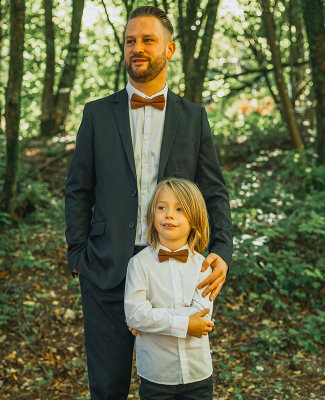 Noeuds Papillon Marron n°1 Père & Fils + Pochette de Costume en Lin «Basile»
